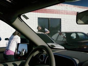 A Secure Lock & Door technician assists a stranded motorist by getting into their car. |