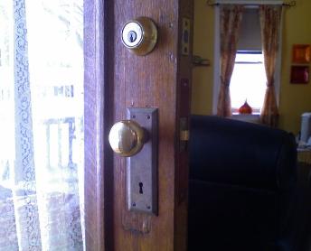 With some careful craftsmanship Secure Lock & Door was able to install a new working door knob while re-using the antique door trim so the door could keep it’s unique look. |
